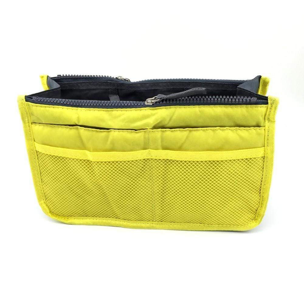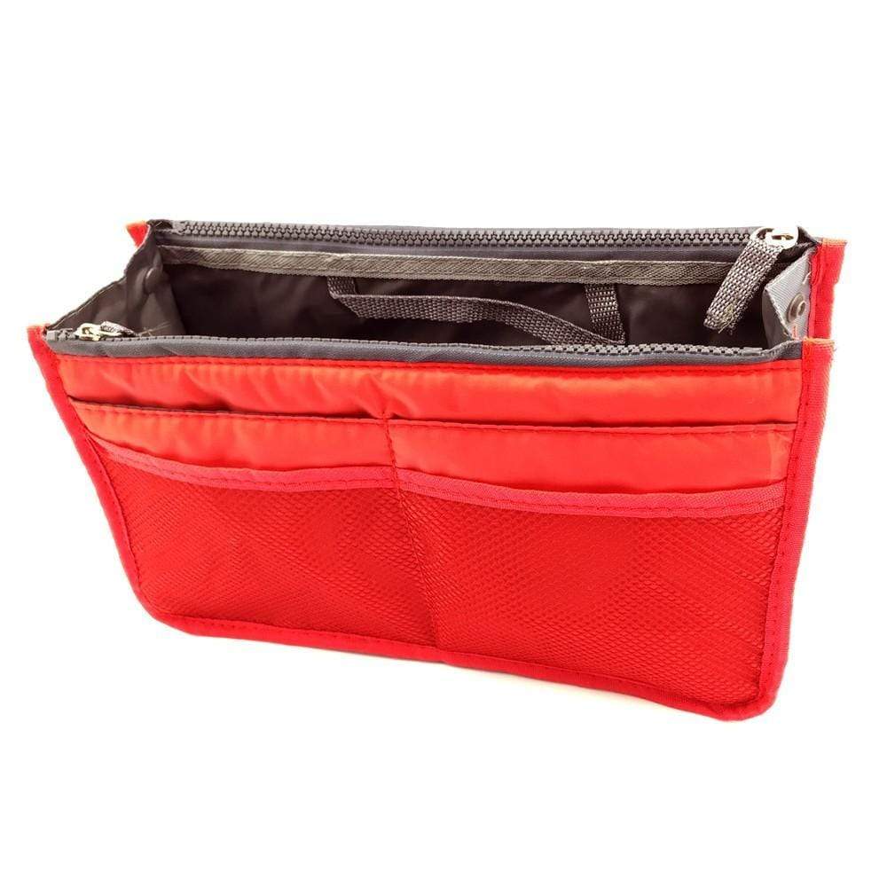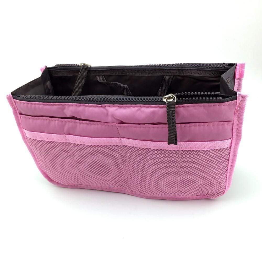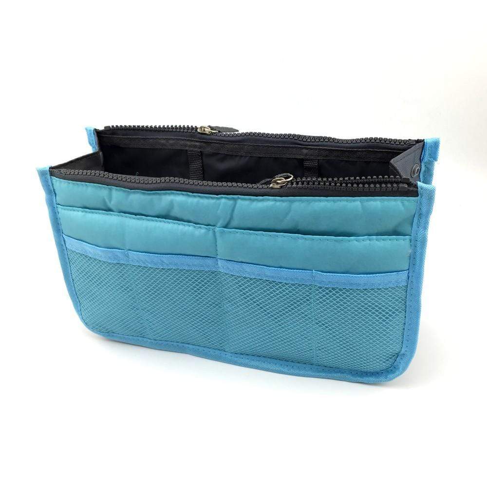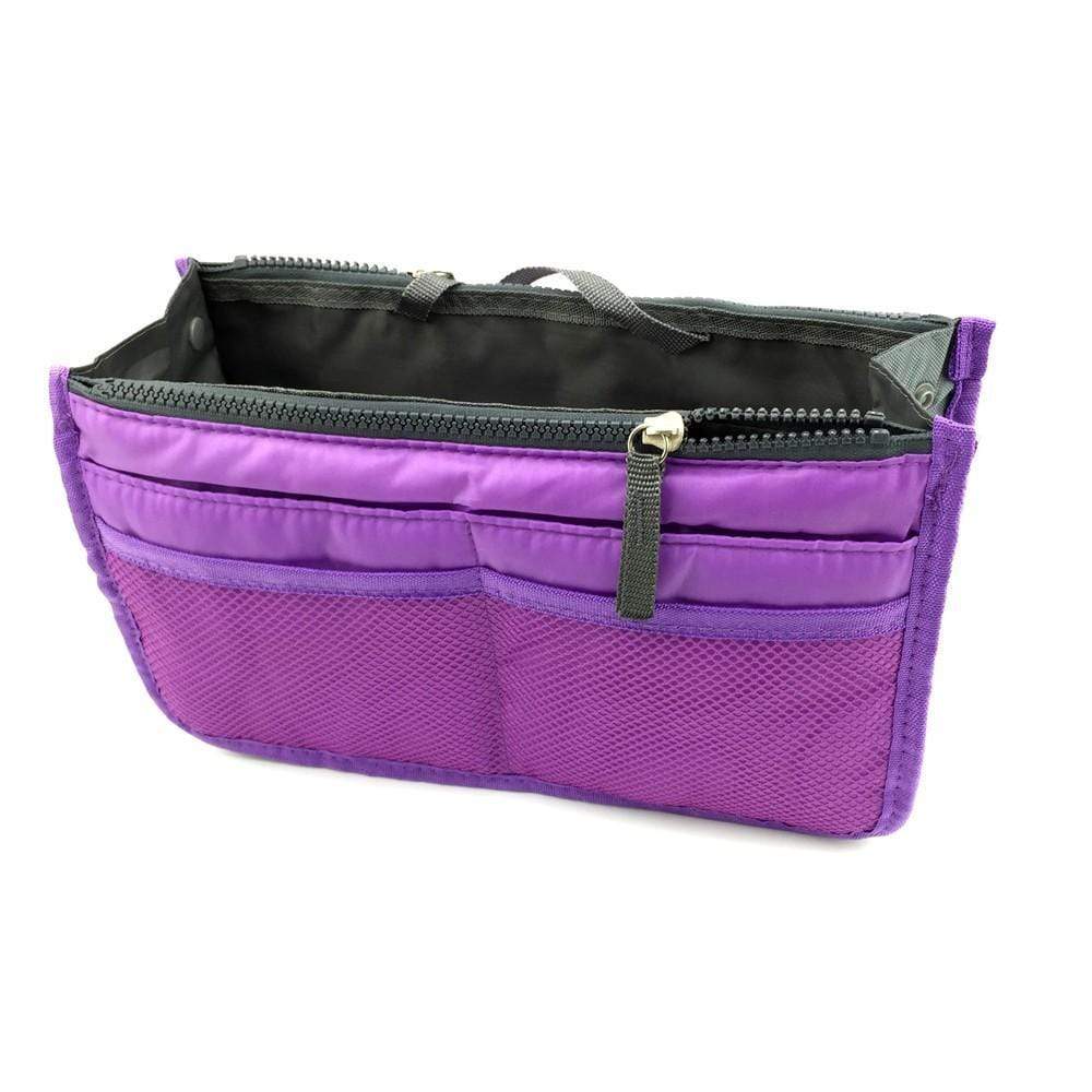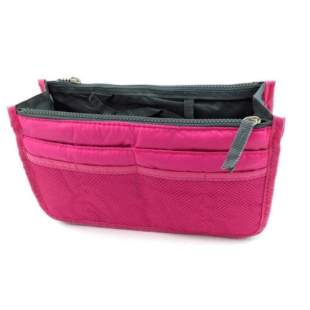 Organiseur pour Sac avec 3 grandes poches intérieures, 2 fermetures, de 10 poches extérieures , boutons pressions pour ajuster sa largeur, deux poignées pour le retirer facilement du sac, une matière résistante et protectrice,