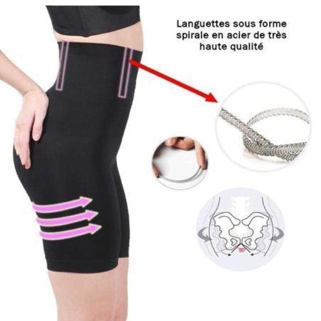 Panty taille haute . Monte jusque sous la poitrine pour effacer les bourrelets , devant et derrière . A cet effet, il a 4 petites baleines ,de 12 cm,2 devant et 2 derrière, qui aident à le maintenir en place . Et ça marche !