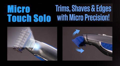 MICROSHAVE™ est conçu pour se raser près de tous les types de peau. Les lames d'ingénierie en acier inoxydable allemand se rasent de plus près et plus précisément que tout autre rasoir électrique. Il comprend trois peignes de coupe (1mm, 3mm, 5mm), une brosse de nettoyage et un câble de chargement USB. Avec MicroTouch Solo, vous n'avez pas besoin de crèmes et de savons malpropres.