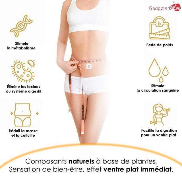 À coller sur votre nombril, PATCHY™ agit pendant plusieurs heures (entre 8 à 12 heures). Ce dernier diffusera dans votre corps des actifs naturels aux vertus amincissantes, facilitant la combustion de vos stocks de graisse et vous coupant l’appétit. Ainsi, ce patch minceur vous aidera à retrouver un ventre plat et fera disparaître la peau d’orange.