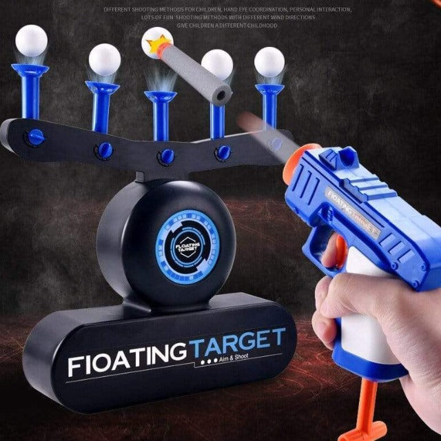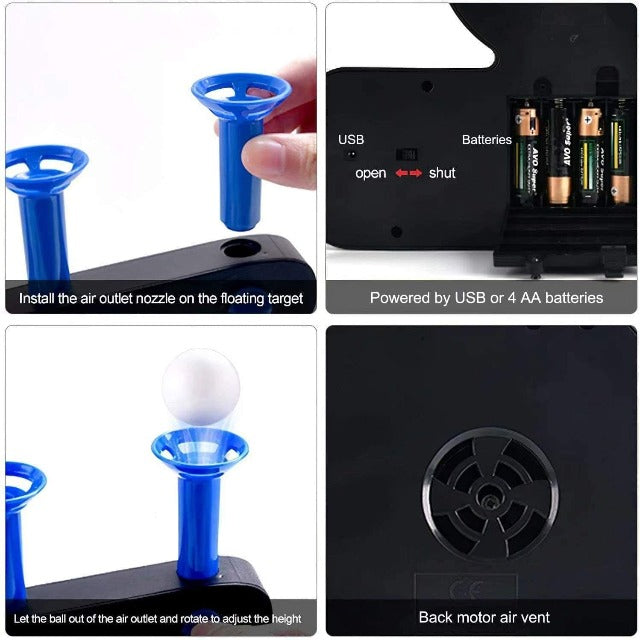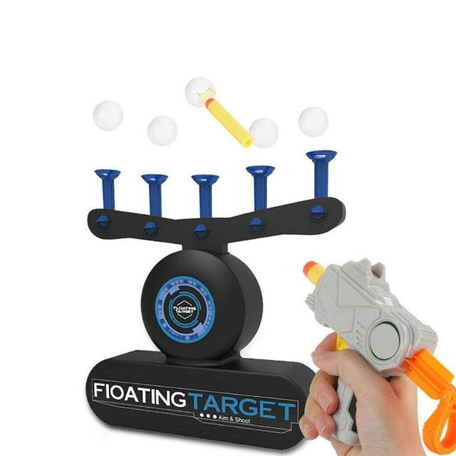 Au top...4 piles AA sont nécessaires...et ensuite...vous pouvez commencer à abattre les 5 cibles, 5 balles qui flottent dans l'air comme par magie. Parfait pour de duels sans se faire mal.