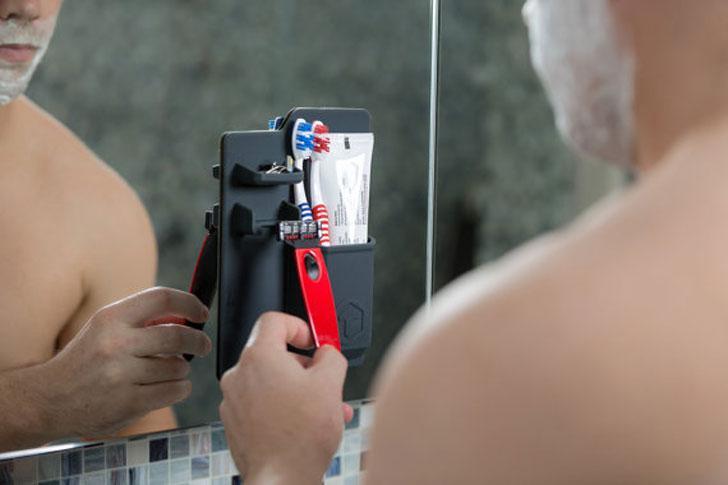 Que vous souhaitiez vous brosser les dents sous la douche, ou que vous souhaitiez garder votre équipement de rasage sur le miroir de la salle de bain, vous pouvez facilement l'atteindre.