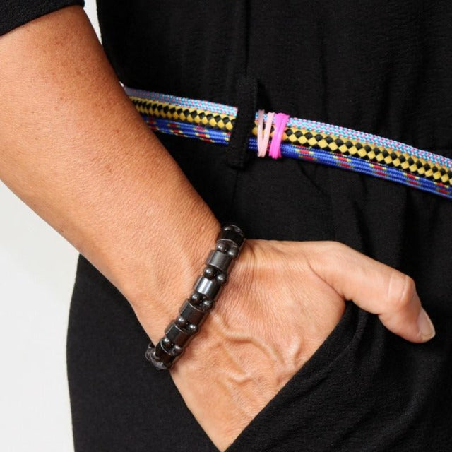 Le Bracelet magnétique BRALOSS est un bijou à la fois esthétique et thérapeutique. Il est léger, discret et se porte élégamment autour de votre poignet. Le Bracelet Magnetique surpuissant apporte des bienfaits essentiels à votre bien-être. Il est fabriqué à partir de l’Hématite, c'est une Pierre naturelle qui harmonise le mental, le corps et l’esprit, protège des énergies négatives et de l’anémie.