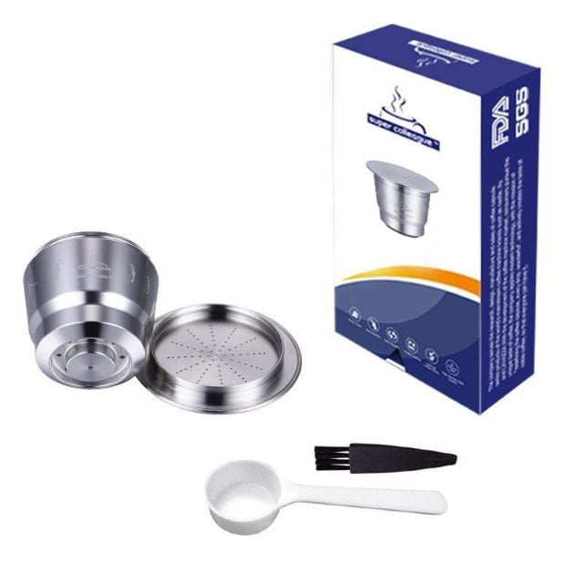 Ces capsules à Café sont rechargeables et sont donc réutilisables. Elles sont fabriquées en acier inoxydable ce qui leur confère une excellente durée de vie. De plus, vous ne risquez pas d'endommager votre machine puisqu'elles reprennent la forme des capsules originelles.