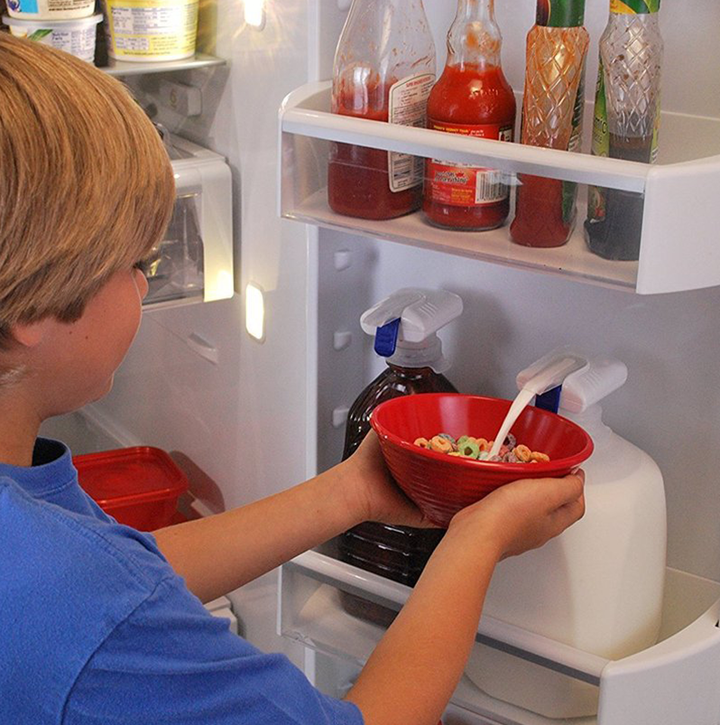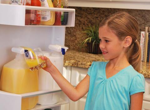 Avec le Distributeur universel de boissons, les enfants peuvent remplir leur propre arc de céréales ou obtenir leur propre jus. Il transforme n'importe quel récipient de boisson en un distributeur de boisson facile à utiliser qui élimine le besoin de soulever des bouteilles lourdes. Le puissant moteur du Distributeur universel de boissons attire la boisson vers le haut de la paille super et le bec verseur sans renverser une goutte. Il fonctionne sur la plupart des boissons non gazeuses, le rendant parfait pour le lait, le jus, l'eau et les boissons pour sportifs. Ne jamais renverser vos boissons à nouveau!