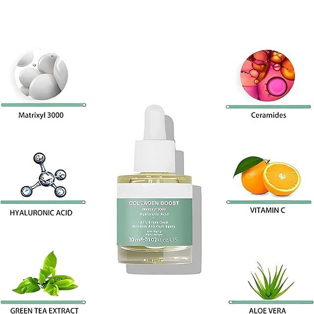 Acide hyaluronique, céramide, vitamines (aloe vera, extrait de thé vert, Matrixyl 3000)