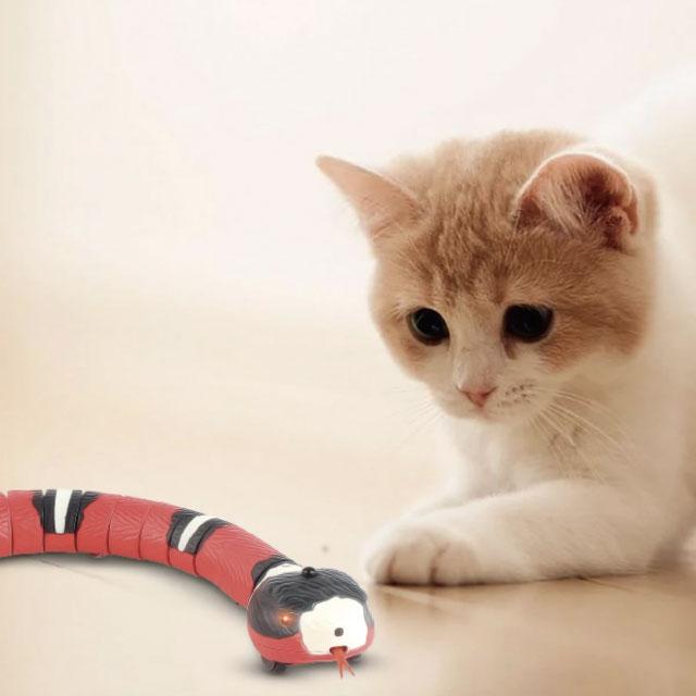 Notre jouet serpent interactif à détection intelligente est doté d'un capteur infrarouge intégré, qui peut détecter automatiquement les obstacles et s'échapper. L'action flexible est très intéressante, nous pensons que votre animal tombera amoureux de ce joli jouet interactif.