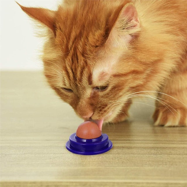 LICANDY se colle facilement partout grâce à son adhésif et permet à votre chat de lécher sa friandise quand il le souhaite !