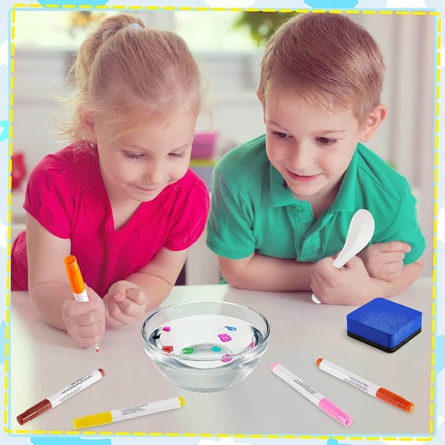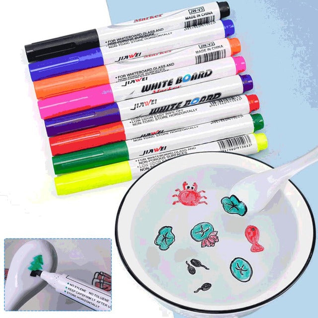 Dessinez n'importe quelle forme sur la surface de la cuillère et voyez-les bouger en direct, l’encre de ces feutres n’est pas soluble dans l’eau, et elle est aussi moins dense qu’elle donc elle flotte intacte à sa surface. En plus, notre encre de haute qualité permet une tenue parfaite des dessins dans l'eau. Assurez-vous que la cuillère en céramique soit sèche avant de dessiner dessus !