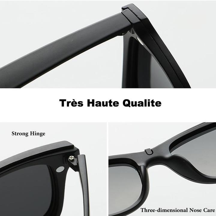 Ces sur-lunettes sont parfaites. Le système de fixation est très discret. Elles s'adaptent parfaitement. On peut les soulever facilement quand on entre dans un magasin par exemple. En plus elles sont très jolies. De loin on dirait des Ray Ban.
