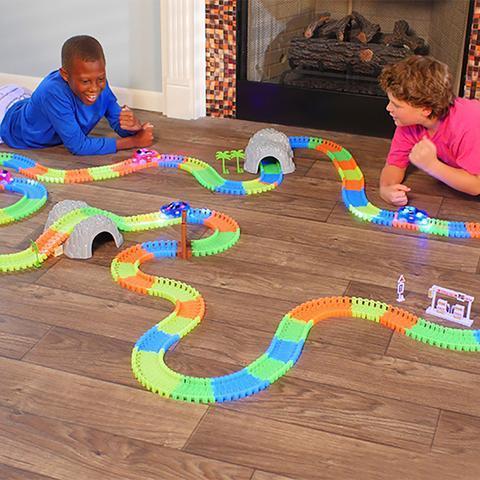 Ce jouet de piste innovant se tord, se courbe, se plie et brille dans le noir au passage de la voiture. Les enfants vont l'adorer !