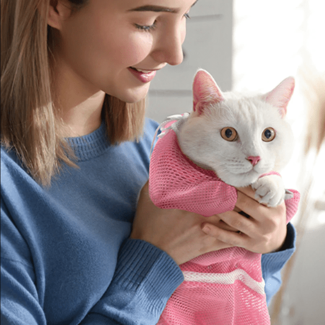 Pour éviter que votre petit compagnon se débâte et se blesse, ou vous griffe, pendant que vous le toilettez ou le soignez, utilisez notre Filet de Bain pour Chat SACHAT. Si vous devez apporter des soins comme une douche, le nettoyage des dents, appliquer un collyre, ou donner des médicaments à votre chat ou chaton, vous pourrez le faire en toute sécurité.