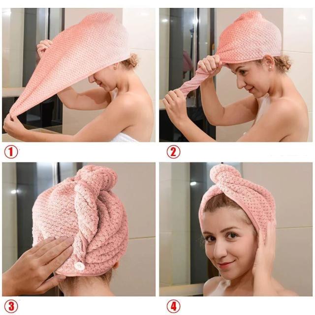 - Son système de fixation rapide et pratique enveloppe vos cheveux comme un turban. De ce fait, l'humidité est bien absorbée, ce qui vous permet de gagner du temps lors du séchage de vos cheveux,