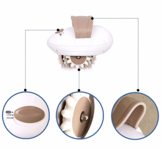 •Les dents de massage rotatives tournent et se meuvent contre les muscles tendus pour stimuler la circulation sanguine et améliorer l'élasticité des peaux